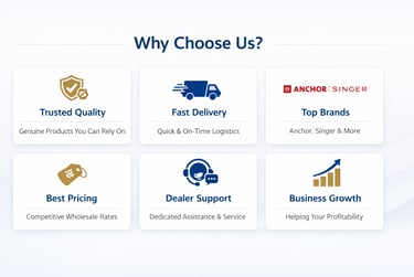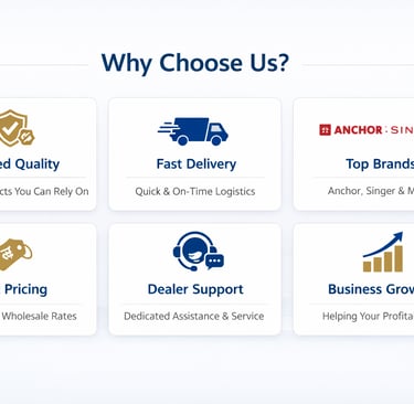 As an authorized distributor of leading brands like Anchor by Panasonic, Singer, Pressfit, and other reputed names, we proudly serve dealers and retailers across Hazaribagh, Chatra, Koderma, and surrounding regions.
